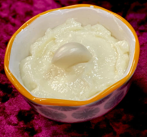 Le toum est une sauce à l'ail faite avec de l'ail, du sel, de l'huile d'olive et du jus de citron. Cette sauce accompagne la plupart des mets libanais.
